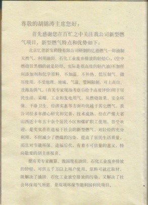 山西億德燃氣有限公司. 北京億德新發科技有限公司. 法人代表劉玉德: 2003年3月~2005年6月. 八次給黨中央. 國務院. 人大. 政協及有關部委呈報的輕烴常溫低壓冷冷制燃氣成熟. 造福人民的“喜報”:這是第八次喜報: